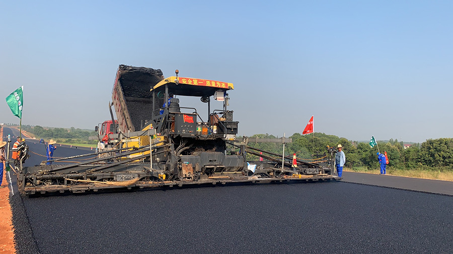 攤鋪機、壓路機等設備緊張有序運行,高達170℃的瀝青混合料炙烤著公路人
